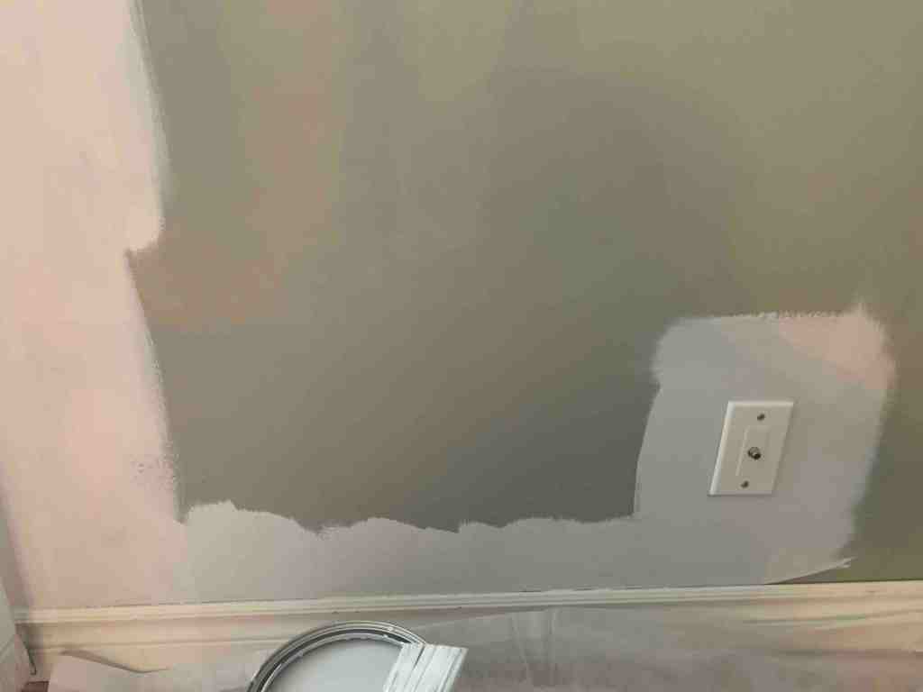 The first coat that Kurt had rolled did a great job of covering the 2-tone walls. I had to look hard to see the line where the dark met the light, but it was there, so I knew the walls with the 2 tones would need 2 coats. The other walls with a light paint, likely would only need one, but we would see.