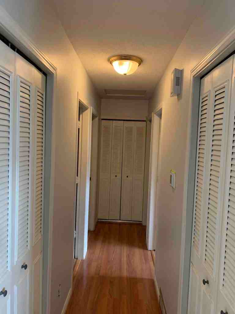 The next day, I got started on the lighter grey paint. I trimmed all of the walls throughout the entire living areas that were going to be painted. It started off a little slow because it has been a while since I have done some trim that I wanted to be nice and perfect. I did a good job when we did our bedroom, but cared a little less in there since it is only Kurt and I that use that room. The living areas are more noticeable, so it was a slow start. Once I got comfortable, it started to move a little faster. I don’t like using tape because it doesn’t always seal properly and it is a pain in the butt to put up but also to take down. The only spots that I did tape were tight areas around door frames that I wouldn’t have been able to paint without getting the door trim.