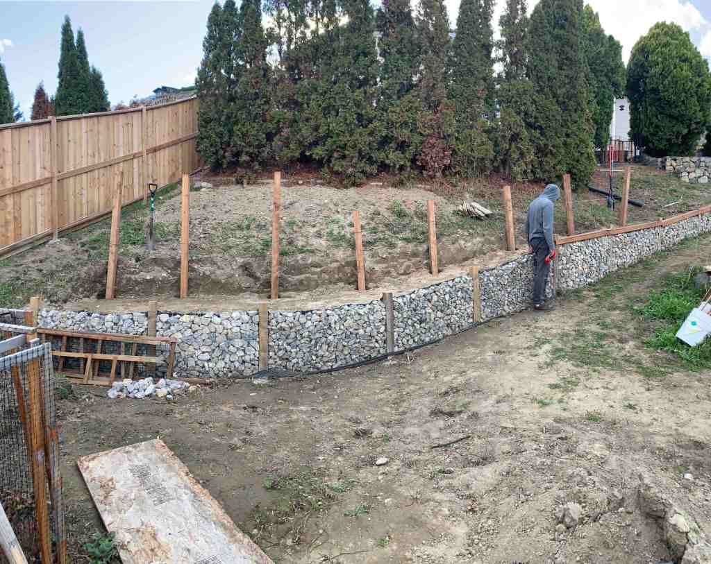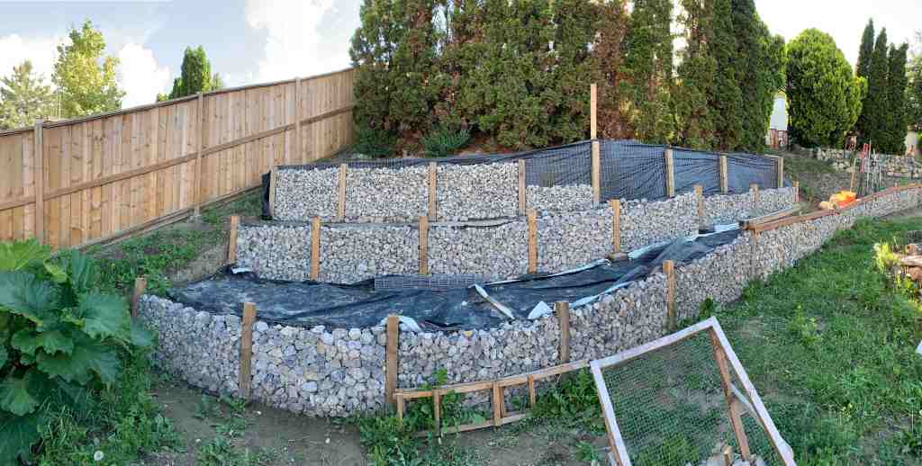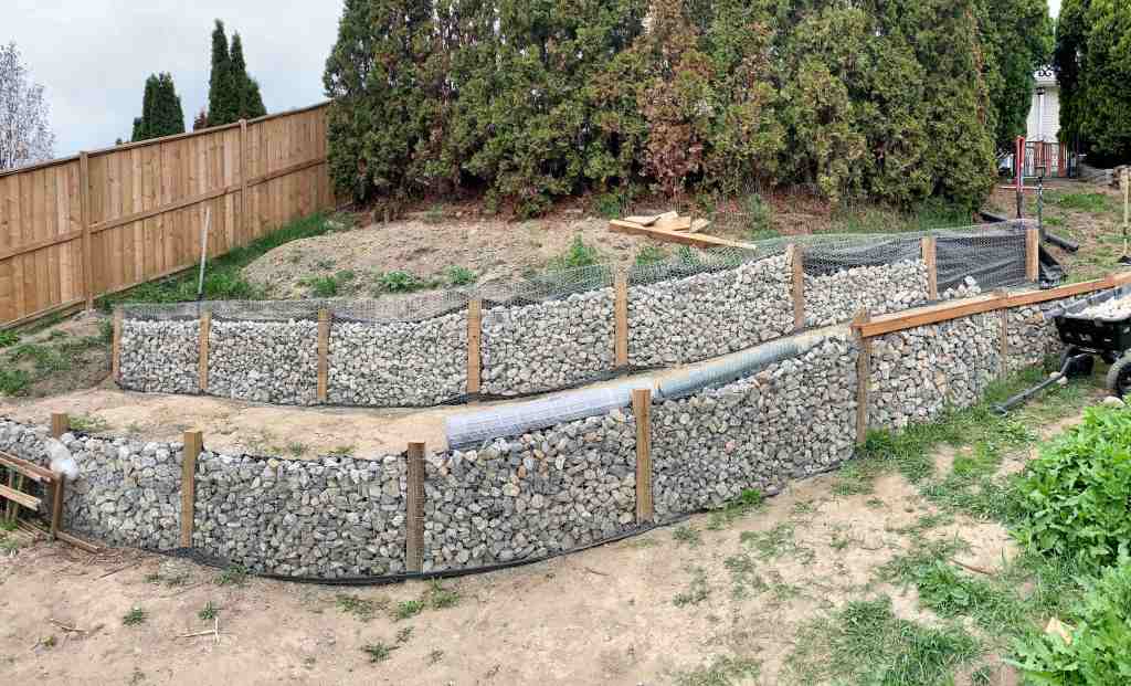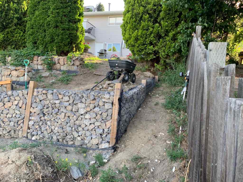 We mostly enjoy our new garden beds in the walls we built in 2020. Finally get our butts in gear and build the bottom wall for the left side of the yard.