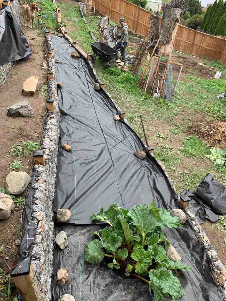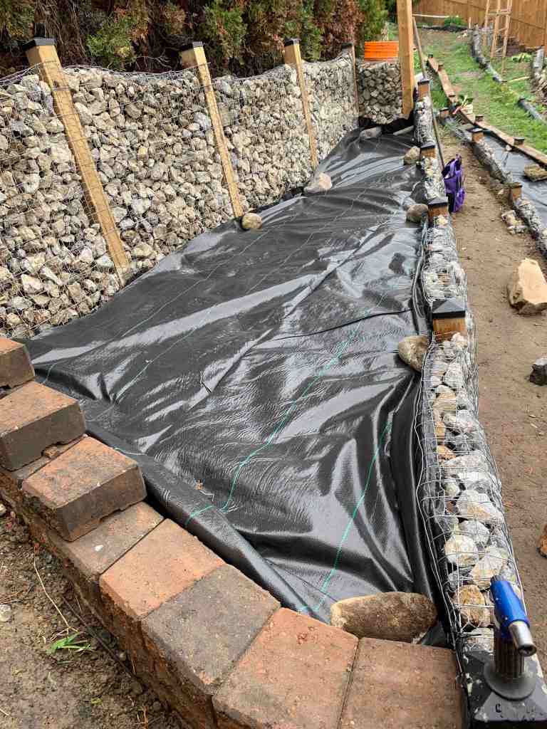 - Cover both top & bottom bed with landscaping fabric to keep the weeds down this summer.