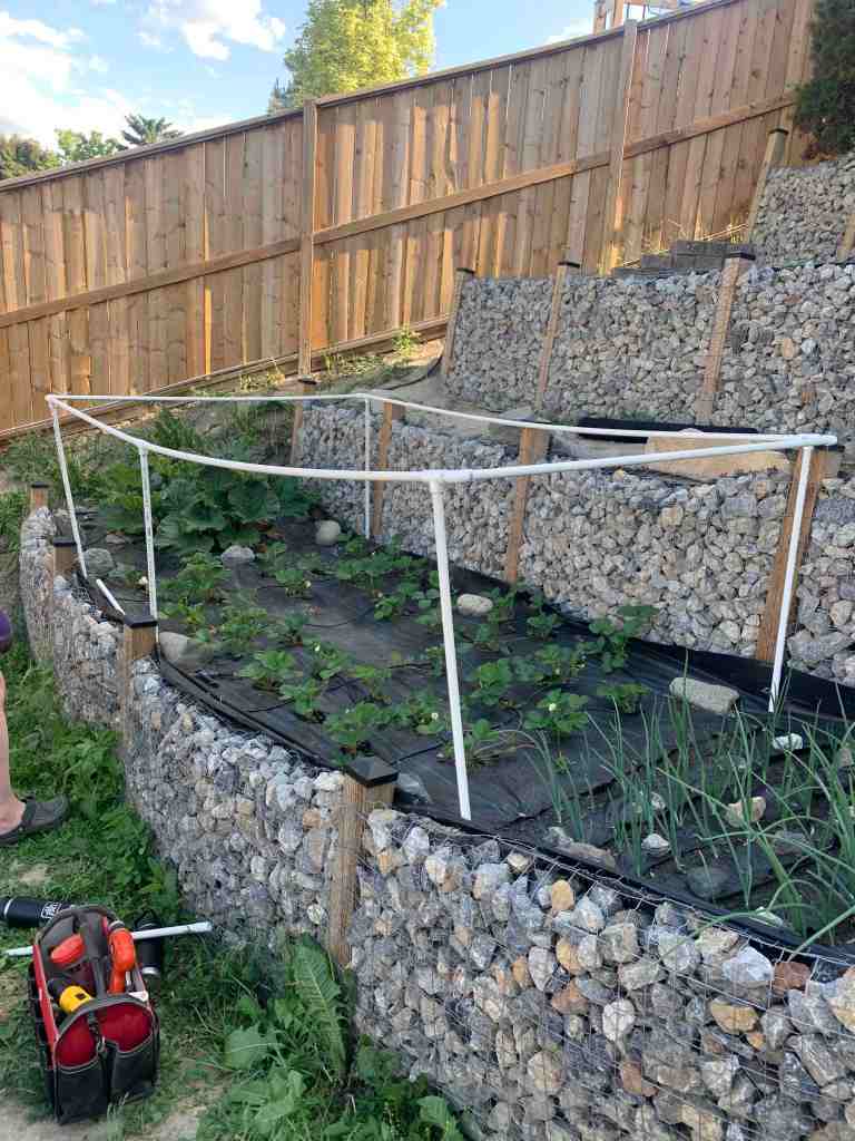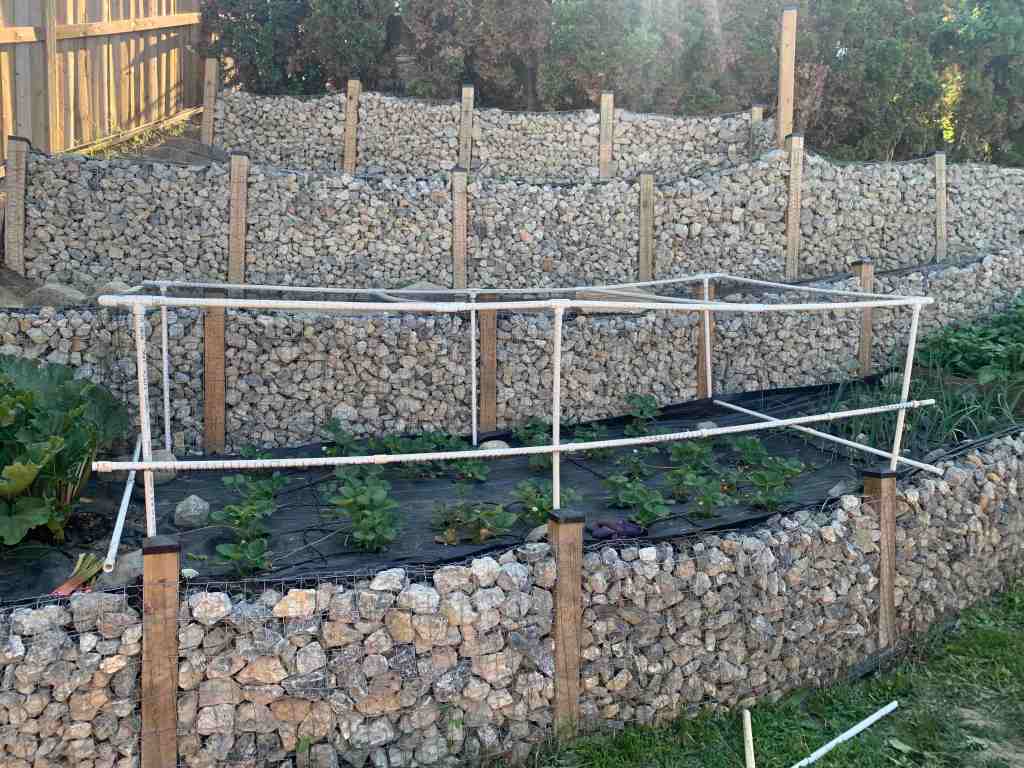 So here we are, once again protecting the berries. A good protection system will ensure no damage to the berries. We went “temporary” with our first one and it lasted 4 years. This time we intended permanent, and hope for many years of use. To help with this, we decided to go with lightweight PVC instead of wood. It should last much longer and provides a lightweight but rigid frame.