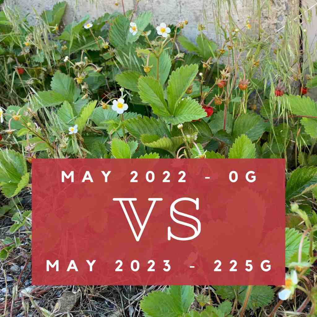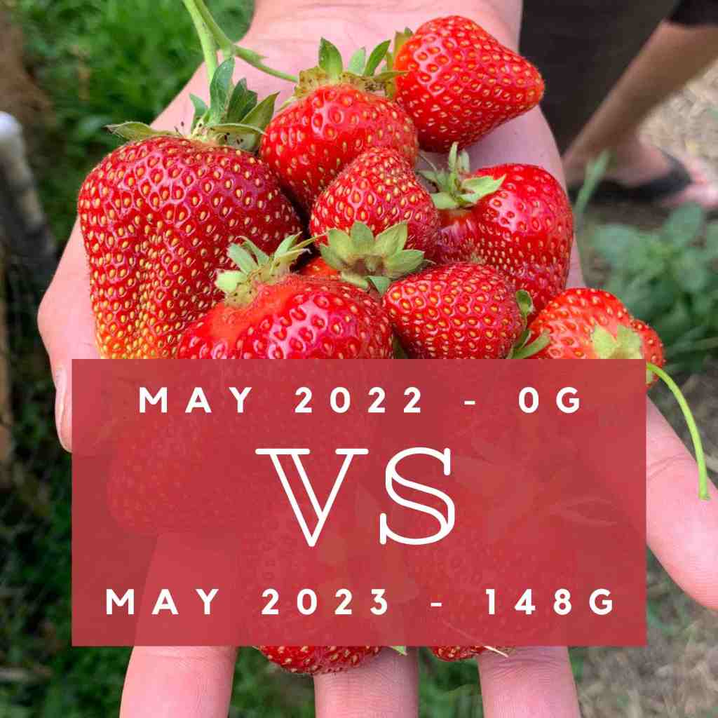 Despite those onions being unplanned, we still would have had our earliest harvest year this year with our strawberries. Our wild driveway strawberries are usually our first harvest of the season. This year they were our third of the season, with the first harvest on May 17. Previously, the earliest we had ever harvested was May 21 in 2021. We will see how the overall harvest shapes up. Hopefully they have a slightly longer growing season and produce lots of little sweet berries. They may be small but they pack a punch!
