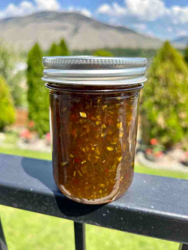 Unfortunately it was too soft a gel for a proper jelly. It was more of a sticky sauce to toss wings in. So I bought a new pack of pectin and added a bit to the not-quite-jelly jelly. It solidified nicely, but was a little sweeter than I wanted it to be. My next batch, I decided to test my new recipe. I decided to reduce the sugar a bit, and use part of a packet of pectin because I wanted the jelly just gelled and not super solid. The 1/2 packet of pectin and the slightly reduced sugar ended up making a great jelly.