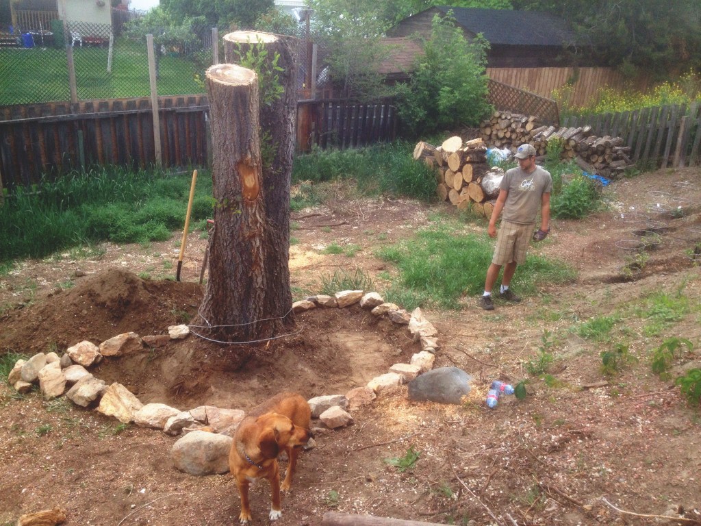In the last 2 summers, it has become apparent, that as we finish the yard and are now working on the bottom portion, that the stump has got to go. It just doesn’t fit with what we have done and what we plan for the bottom. Sure, we could incorporate it, but it will always be a bit in the way, and eventually will rot, at which time we will have to deal with the stump anyways. So we decided to get rid of it.