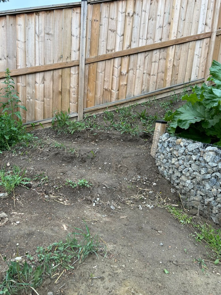 Moving to the other side of the yard, the area that we plan to put a deck is also absolutely out of control. The tree-like weeds are growing fast with the hot weather and few days of rain that we have had. I will be working on weeding that area this week, and then I plan to cover it with tarp paper in order to create a bit of a seating area this year for when we are using the pool.