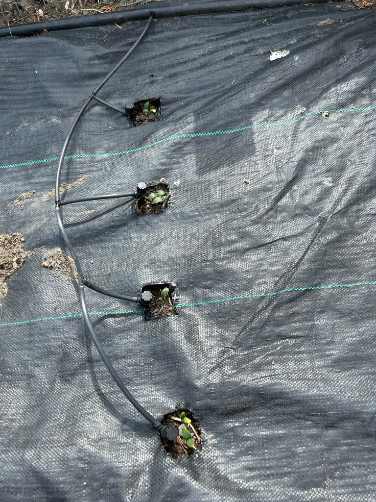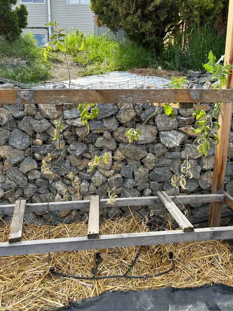 Beside them we have cucumbers, which just started sprouting on May 20. those will grow down the bed, and meet up with our pepper patch. I realized I only made space for 4 pepper plants, and have 8 to go in the ground, so I will be adjusting and adding more peppers further down.