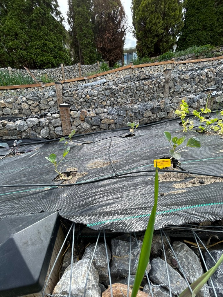 So where are we at? Well ignoring the landscaping project of putting in a pool and eventually a floating deck at the bottom of the yard….we are mostly planted. AND, it is on par with planting dates from last year, so technically on-time.