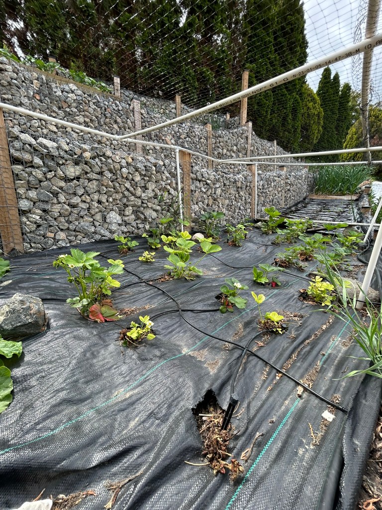 Last, but certainly not least, the driveway strawberries are in their glory. They have been flowering like crazy and today I got our first big harvest from the plants. I would say there is the same amount of strawberries again on the plant still, that need just a few more days to be fully red. They are tasty little natural candies. So flavourful.