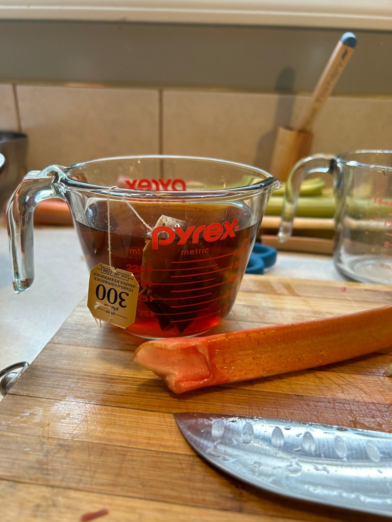 This is an ode to Gran. The tea and rhubarb mixture just makes me think of my Gran. As a kid, I think the only time I ever had rhubarb was at Gran’s, and she is the one who set me on the path of being a tea drinker rather than a coffee drinker. Though, when she started serving tea to me and my sister, I am pretty sure it was 90% milk, 8% sugar and 2% tea. But it was enough.