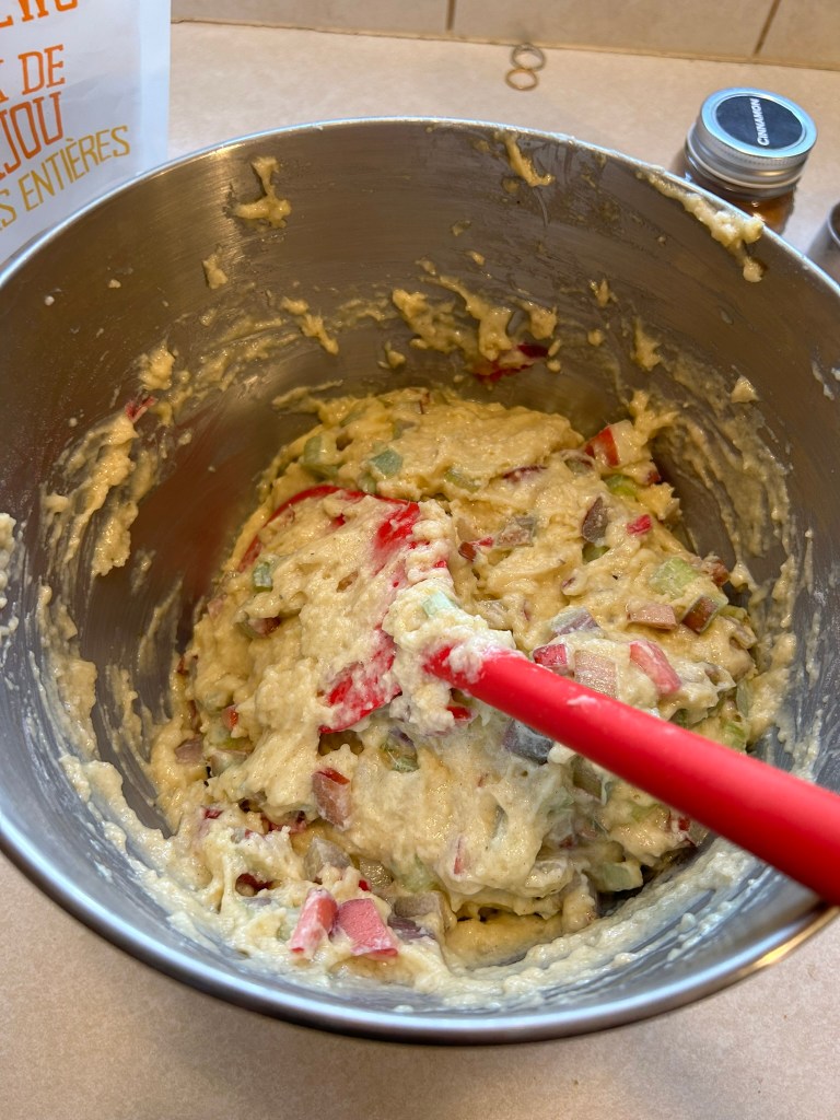The original recipe that I found for this was very basic. It lacked spices, though it did seem to get a lot of great feedback online, so I decided to use it as my base and make some tweaks to my own personal preference. To be fair, I also didn’t try the original recipe as it was, which may have been delicious in it’s own right. I still found with the tweaks that I made, the flavour of the rhubarb still shines with this cake.