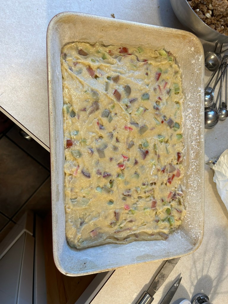 Technically, this is someone else’s recipe from their Oma. But, I had an Oma, and I made some variations to the original recipe, so I am rolling with the “Oma’s Rhubarb Cake” name.