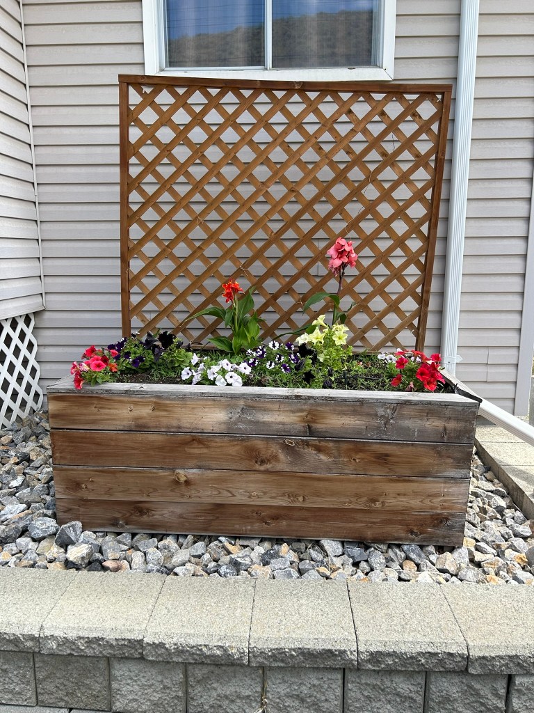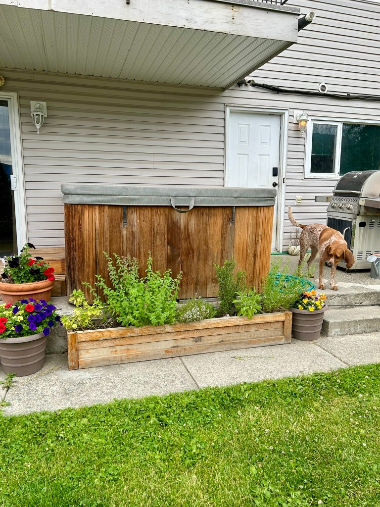 The romaine is really starting to take off now, so I planted more where the iceberg was originally planted. Unfortunately the dog kept stepping in them so the iceberg lettuce didn’t have a chance. I have put up some pinwheels that at least make Basil jump over them, saving my planter.