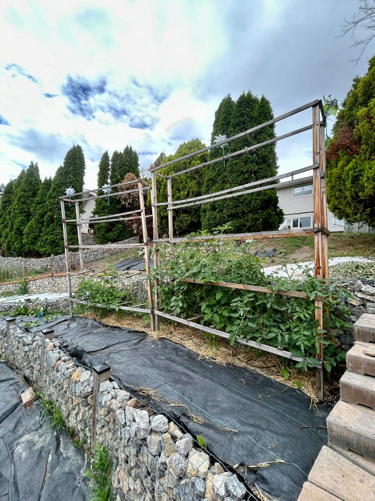 We did a little trimming of the tomatoes recently because they have finally really started growing. Mostly bushy, but also some good height. We wanted to open them up a bit to ensure lots of light can get into the tomatoes. We noticed a few have started, so it was perfect timing. Lets get all that energy into growing more!