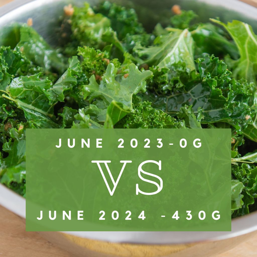 Kale is new this year, so not really so much a comparison but rather a record for this year. I ended up with 2 kale plants and they are amazing. I can just barely keep up with them and I am eating kale in my salads every day.