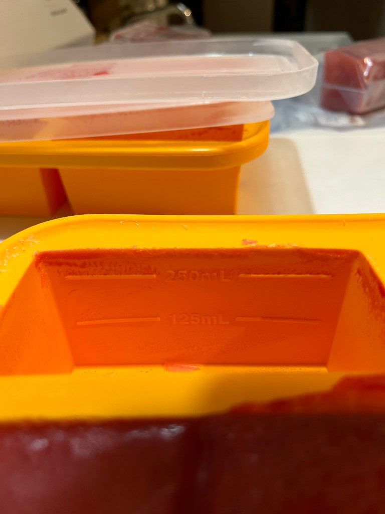 This left me with a bit of a conundrum in how I wanted to freeze it. I would prefer to freeze it in 1 cup measurements because that is what the recipe calls for. But doing that in containers takes up a lot of room, and I always worry about ziplock bags leaking before it freezes fully. So I went in search of a better solution.