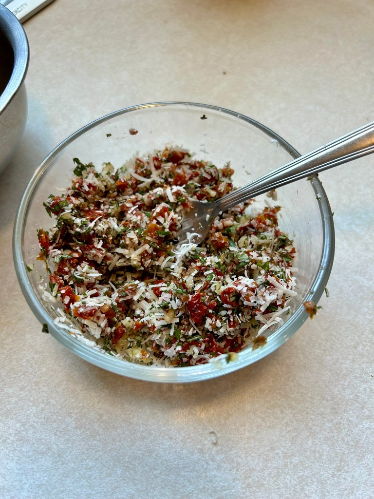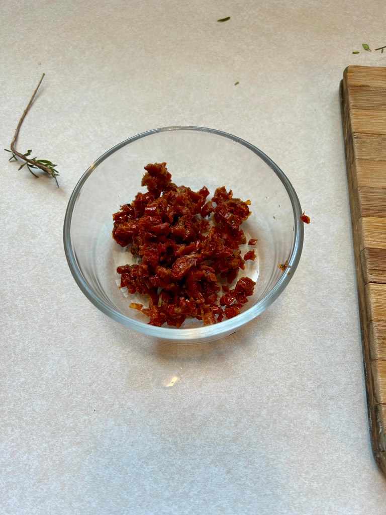 - 200 g sun-dried tomatoes – finely chopped
