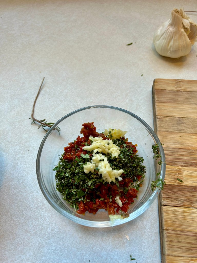 You can use sun-dried tomatoes in oil, just let them sit on paper towel for a bit, and dab off most of the oil. - 10 g mixed herbs finely chopped – Fresh preferably, but dried is also fine.