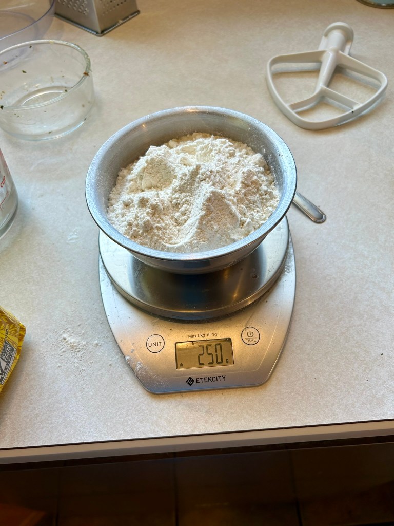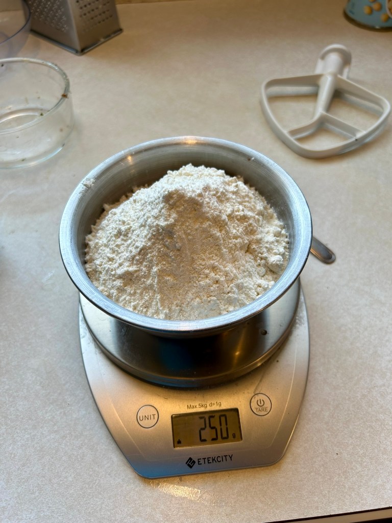 - Using a kitchen scale weigh your unfed starter, water & flour.