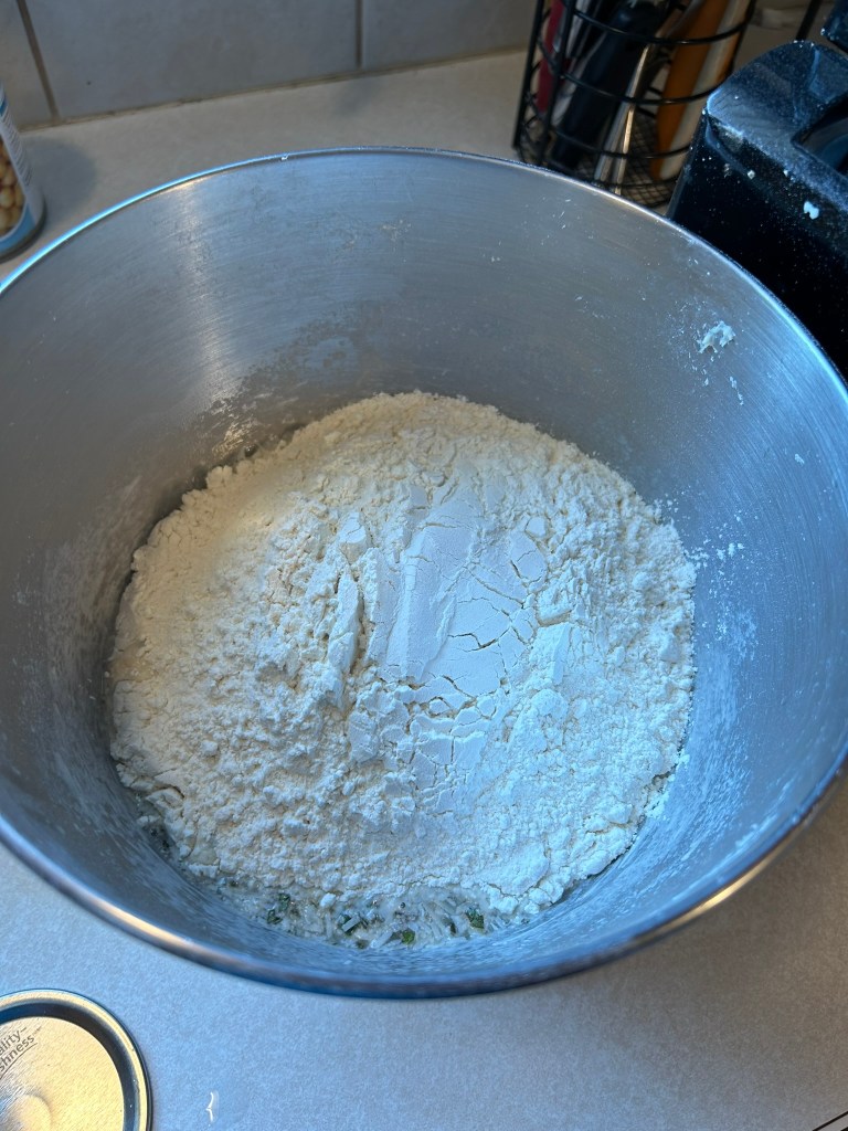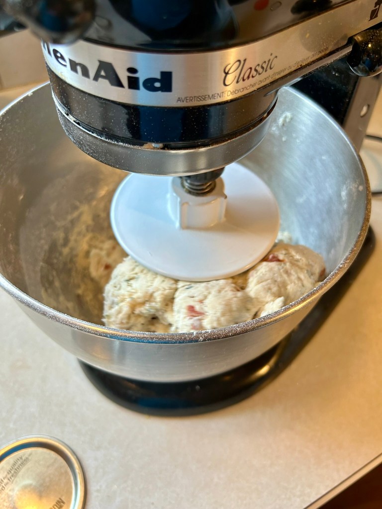 In the winter, I will have to use some of our dehydrated herbs, but my plan is to make a bunch of batches during the summer when our herbs are nice and fresh, so that I can enjoy these all winter long. I will likely do some batches already baked, and some that will be in the dough stage for when company comes. You always feel like the hostess with the mostest when you are making the house smell amazing and are pulling fresh pastry or breads out of the oven as your guests wake up.