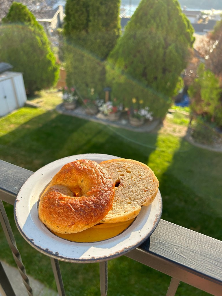 I may have to try some other flavours of bagel. I am curious about a beet bagel…it would be a very vibrant colour, but I am also curious about the flavour. I’m betting it will be delicious with a smear of goat cheese. Mmmmm! So that will likely be a future batch. It will just be deciding if I use pureed beets, juice the beets, or dehydrate and powder the beets.
