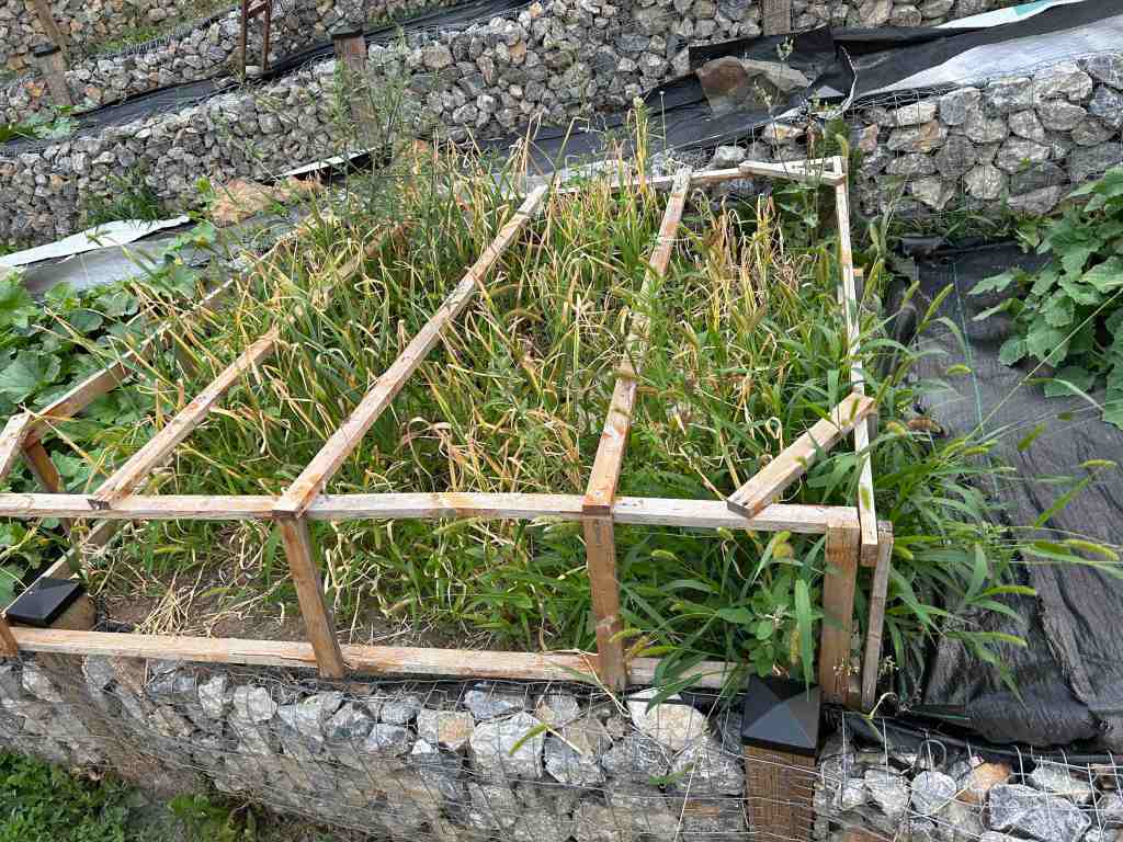 One side of our bed did still result in some smaller heads of garlic. I believe this is because it wasn’t getting enough water once the big leaves on the garlic grew. Although we did have a sprayer on that side of the bed, it was old and didn’t do a good job. We unfortunately didn’t realize until well into the growing season.