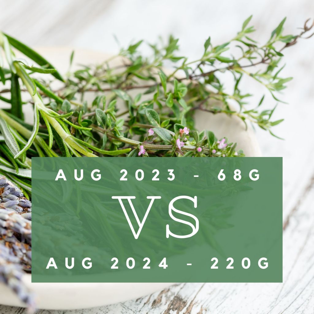These are again subjective, based on what I am cooking or processing. I will likely have some good numbers for October since I plan to make some sundried tomato pesto soon and will be harvesting all of our basil. I will also likely be cutting back a lot of the herbs to dry them for winter use so October numbers should be good.