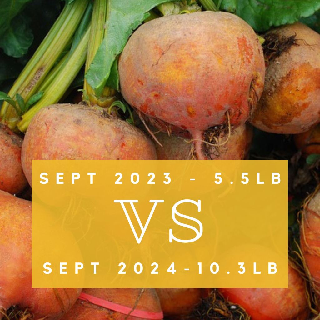 Similarly, I would say that our beet harvests were also dependent upon when they were needed. Our garden is full of beets that I can go and pick at any time, but it all depends on what I am cooking. I’d rather not pick them to go soft in the fridge if I am not using them. Clearly, we have used more beets this September, and were heavier on our beet consumption in August last year. It will be more interesting to see what our October harvests will be when we clean out the garden. That will give us the overall for the year, which will give a better indication of our overall yields.