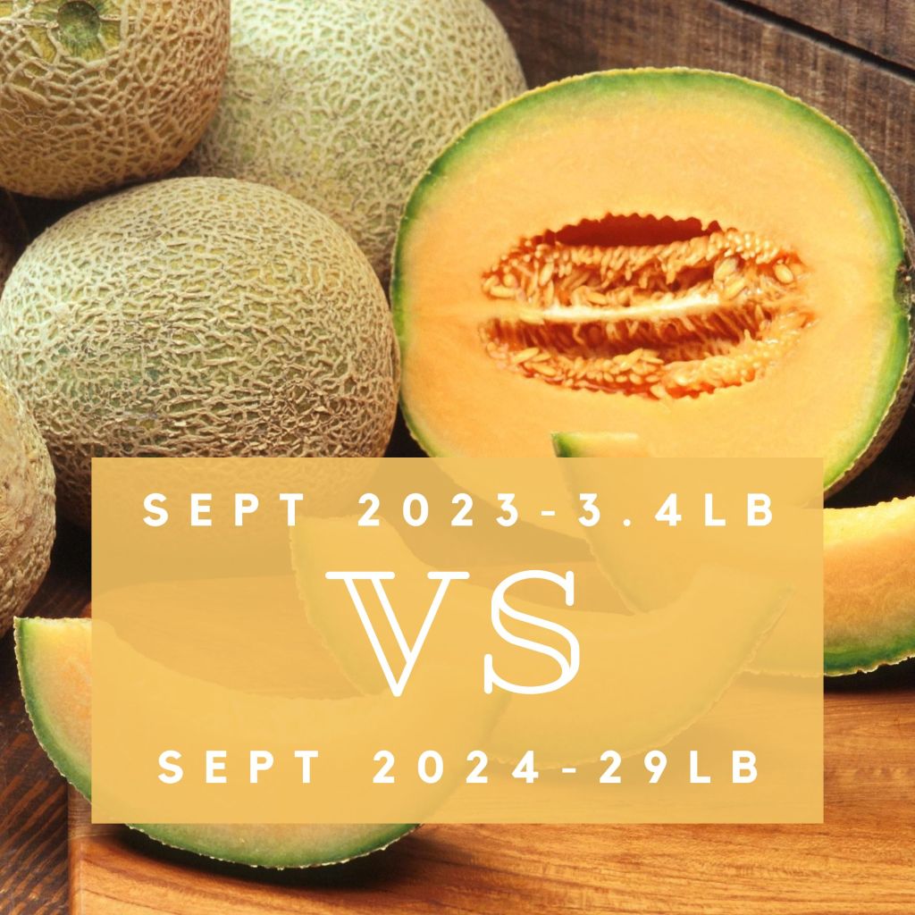 We are doing well with the cantaloupe. Not as well as last year, but we will see what the final yields are. I have a few that I have been hoping will get golden, but now that the weather is chilling quite significantly, I am going to have to pull them a little green. Like many of our plants, it just seems like our cantaloupe was about a month behind this year. Our main harvest last year was mid-august, and this year, it wasn’t until mid-September, as you can see from the above comparison numbers. We did pull some in October last year, so we will see how the ones this year compare overall. Either way I am happy with our harvest this year and have lots of cantaloupe frozen for enjoyment over the winter.