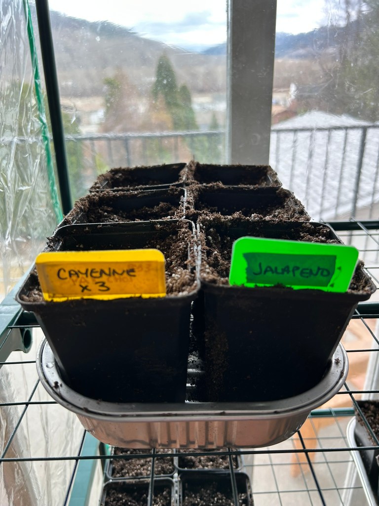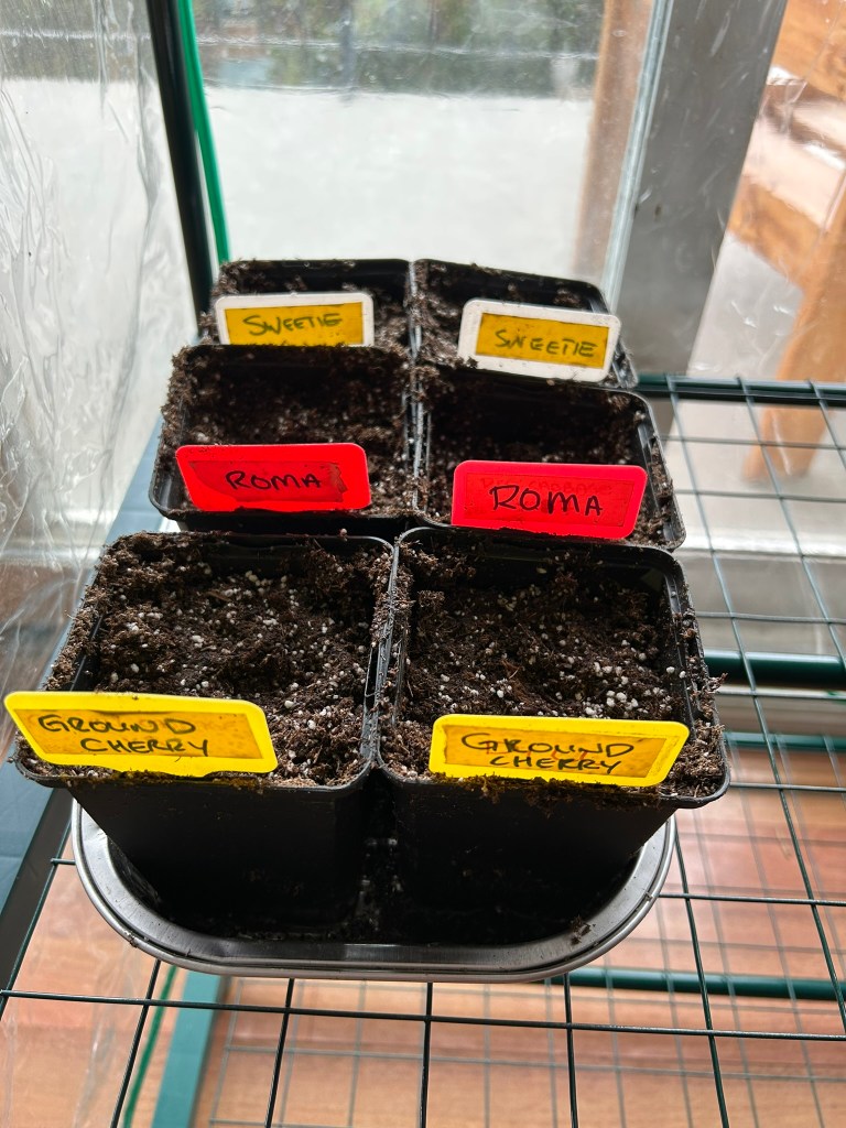 The other difference is how we are planting some of the items. To try and manage the leggy nature of our tomatoes and peppers, we decided to start them in smaller containers. Once they get to a certain size, I will be able to transplant them into larger containers.